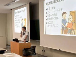 特に「基礎的な介護技術に関する講義」では、同大学の卒業生であり、現在は当法人ウィズアスの居宅介護事業部にて勤務する職員が登壇。先輩としての経験を交えながら講義を行い、受講する学生にとっても身近で意義深い学びの時間になったと思います!